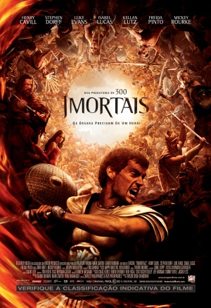 Imortais (Immortals, Estados Unidos, 2011). Direção: Tarsem Singh. Roteiro: Charley Parlapanides e Vlas Parlapanides. Elenco: Henry Cavill, Mickey Rourke, Stephen Dorff, Freida Pinto, Luke Evans, John Hurt, Joseph Morgan, Anne Day-Jones, Greg Bryk. Duração: 110 minutos.