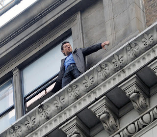 Sim, o roteiro de Pablo F. Fenjves é consciente da irrelevância de mais da metade dos personagens, e desafio o espectador a encontrar a mínima utilidade do negociador Dougherty cuja única função aparente é convocar Mercer a pedido de Nick. A propósito, considerando o esforço do roteirista em conceber a totalidade da situação descrita (como Um Dia de Cão ou O Quarto Poder), é embaraçosa a ação dos cidadãos que, em um primeiro momento, instigam Nick a saltar com gritos de “Pule! Pule”, para em outro momento, transformá-lo no herói do povo, no homem comum levado ao extremo. Há, inclusive, o vergonhoso momento manipulador em que, para retardar a ação de alguns policiais, Nick começa a lançar maços de dinheiro à população de curiosos causando tumulto e alvoroço nas ruas. Obrigado seus personagens a agir de forma estúpida e incompreensível – é Englander quem remove o diamante do único lugar em que ele estaria verdadeiramente seguro para, bem, colocá-lo naquele em que ele se encontra mais exposto -, Pablo F. Fenjves ultimamente comete o equívoco de introduzir um dos elementos mais frágeis para unir as pontas do roteiro: o livre-arbítrio potencializado pelo tempo meticulosamente seguido por Joey para executar as ações no outro prédio. Dessa forma, a identidade de Nick TEM que ser revelada no momento exato para induzir os policiais a checarem a segurança e fornecerem a senha de segurança para entrada no cofre (agora imagine um filme todo recheado de situações desse tipo).