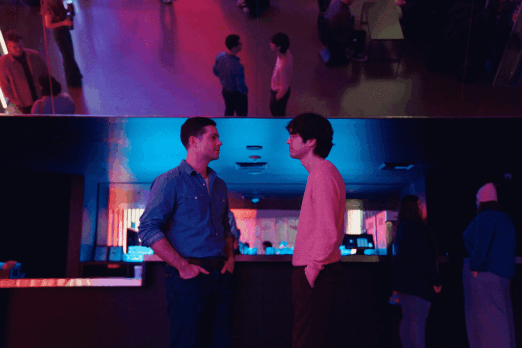 Com humor ácido, James Sweeney inicia esse estudo humano na vivência do luto sofrido por um irmão gêmeo em razão da morte precoce do outro. Se é na ausência que valorizamos quem está ao nosso lado, o distanciamento definitivo entre pessoas que estiveram biológica e fisicamente vinculadas desde o útero pode representar uma perda quase que física daquele que permanece. Roman (Dylan O’Brien) é o gêmeo que fica após a morte de Rocky (O’Brien), jovem, a vida toda pela frente. Buscando compreender e seguir após a tragédia, o sobrevivente frequenta um grupo de apoio de pessoas que também perderam seus duplos uterinos, ali conhecendo Dennis (interpretado pelo próprio diretor), com quem ele desenvolve uma aproximação que gradualmente se transforma em uma espécie de substituição mútua do ente querido que se foi.