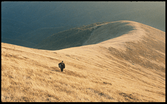 This inclination is reinforced through editing choices that flirt with abstraction and experimentation, in an effort to capture images and construct sequences that are less conventional, challenging the typical realism of the genre while exploring the potential of 16mm cinematography. It is in these moments that the film documents the conflict most effectively, because it explores landscape, sensibility, and human experience rather than reiterating what we already know about the destructive power of weapons or devastated cities. When we observe mountains and natural landscapes from a distance and contrast them with the ruins of Mariinka, we perceive the permanence of the natural in contrast to the human, and the insignificance of the individual within a war zone.